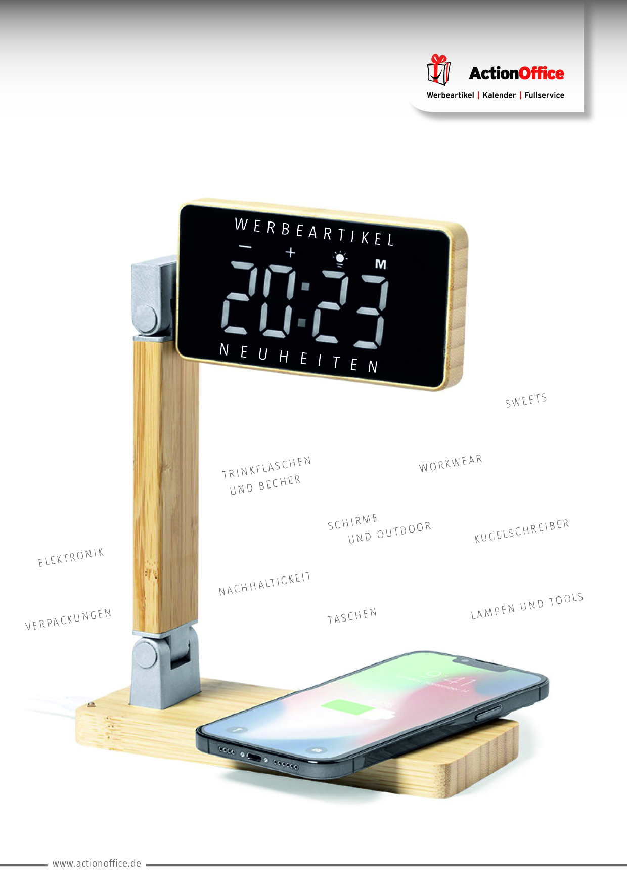 Der Tischaufstellkalender mit LadefunktionDer Tischaufstellkalender Wireless Charging Kalender VYNN® begeistert als Werbeneuheit der digitalen Generation. Bei ihm handelt es sich um einen analogen Tischkalender, der mit einer kabellosen Ladestation für kabellos ladefähige Geräte kombiniert ist. Der Kalender der mehr kann! Januar 2023 |